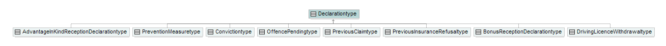 | ownedMember | AbbreviatedNametype ABIPolicyIdentifiertype ABSAvailabilityMannerCodetype AccelerationSpeedMeasuretype AcceptanceDerogationTypeCodetype AcceptingBeneficiaryTypeCodetype AccessoriesReplacementCostAmounttype AccessoriesTransferCostAmounttype Accessoriestype AccidentalDeceaseCovertype AccidentCauseTexttype AccidentGravityLevelCodetype AccidentNotificationJointlySignedIndicatortype AccidentOccurredInBelgiumIndicatortype AccidentPersonIdentifiertype AccidentPreventionProceedingTexttype AccidentPreventionProceedingTypeCodetype AccidentRegisterBIdentifiertype AccidentsInsuranceTypeCodetype AccidentsSinceAdjustmentCounttype AccidentsSinceAdjustmenttype AccidentTreatmentPhaseCodetype AccidentTypeCodetype AccountingDatetype AccountingDocumentCurrencyCodetype AccountingDocumentLineContractIdentifiertype AccountingDocumentLinetype AccountingDocumenttype AcquisitionCommissionTotalAmounttype AcquisitionCommissiontype ActionDateAndTimetype ActionDescriptionTexttype ActionEffectiveDatetype Actiontype ActivityExecutionAddresstype ActivityExecutionLocationTexttype Activitytype ActivityTypeTexttype ActualIndextype ActualInsurerOftype ActualValuetype AdaptationAndAidCovertype AdditionalActivitytype AdditionalInsuredValueAmounttype AdditionalOccupationtype AdditionalSeatsCounttype AdditionalSubmissionAdresseeIdentificationCodetype AdditionalSubmissionOrRelatedDocumenttype AdditionalSubmissionSendingCodetype AdditionalSubmissionTotalCounttype AdditionsValueTotalAmounttype AddOnInsurertype AddressExtensiontype AddressIdentifiertype AddressLanguageCodetype Addresstype AdministrationCostAmounttype AdministrativeChangeOnlyIndicatortype AdministrativeRefusalIndicatortype ADRNumbertype AdvanceAmounttype AdvantageInKindReceptionDeclarationtype AdvantageInKindtype AdvantageInKindTypeCodetype AffinityGroupIdentifiertype AffinityGroupTypeCodetype AgeLimitExcessIndicatortype AgeOfVehicleBasedDiscountPercentagetype AggravatedTheftRiskVehicleIndicatortype AgreedSubrogationIndicatortype AirVehicletype AlarmAcknowledgementTypeCodetype AllDriversOverReferenceAgeIndicatortype AmbulatoryMedicalExpensesCovertype AmendmentDatetype AmendmentEffectiveDatetype AmendmentIdentifiertype AmendmentReasonCodetype AmendmentReasonTexttype AmendmentSubIdentifiertype Amendmenttype AmendmentTypeCodetype AmountArithmeticSignCodetype AmountLevelCodetype AmountPaidAdditionAmounttype AmountPaidDeductionAmounttype AmountPaidTypeCodetype AnimalAcquisitionDatetype AnimalGenderCodetype AnimalNameTexttype AnimalRegistrationIdentifiertype AnimalsCounttype Animaltype AnimalTypeCodetype AnnualIndemnificationtype AnnualPremiumIndexedtype AnnualPremiumNonIndexedtype AnnualPremiumtype AnnulmentDatetype AnnulmentReasonCodetype Annulmenttype AntennaPresenceIndicatortype AnticipationBonusPercentagetype AnticipationBonusTypeCodetype ApartmentsCounttype ApartmentsIndicatortype AssaultCovertype AssessmentCategoryCodetype AssessmentClosingDatetype AssessmentDatetype AssessmentExpensesGuaranteetype AssessmentFeeQuotationTypeCodetype AssessmentFeeTransferIndicatortype AssessmentFinalizedIndicatortype AssessmentFirstValueAmounttype AssessmentIdentifiertype AssessmentLocationCodetype AssessmentLocationTexttype AssessmentRelatedDocumentSenderTypeCodetype AssessmentRelatedDocumentsToBeDeliveredCodetype AssessmentReportContentsCodetype AssessmentReportCurrencyCodetype AssessmentReportReceptionDatetype AssessmentRequestLastUpdateDatetype AssessmentRequestOriginCodetype AssessmentRequestSentDatetype AssessmentResultTypeCodetype AssessmentRisedByCodetype AssessmentSecondValueAmounttype Assessmenttype AssessmentTypeCodetype AssessorAcknowledgementIdentifiertype AssessorAppointedIndicatortype AssessorAppointmentTypeCodetype AssessorFirstInterventionDatetype AssessorRegionCodetype Assessortype AssessorTypeCodetype AssignedAssessmentTypeCodetype AttacksAndTerrorismGuaranteetype AttacksAndWorkConflictsGuaranteetype AudatexAssemblySchemeIdentifiertype AudatexBlocTexttype AudatexCalculationIndicatortype AudatexCalculationsCounttype AutomaticForfeitizationIndicatortype AVCValueInclusiveCatalogueValueIndicatortype AverageConsumptionQuantitytype AverageMileagePerYearCounttype AviationLicenceLossCovertype BackLeftTyreProfileMeasuretype BackRightTyreProfileMeasuretype BadShapeIndicatortype BalanceOverdueAmounttype BankruptcyDatetype BasePremiumtype BcssKszEntryDatetype BedroomsCounttype Beneficiarytype BeneficiaryTypeCodetype Bicycletype BidAmounttype BidDisqualifiedIndicatortype BidOrOfferCommunicationTexttype BidOrOffertype BidPeriodStartDatetype BidRequestExpiredIndicatortype BidRequestIdentifiertype BidRequestNotificationDatetype BidRequestValidityEndDatetype BidRequestWithdrawnIndicatortype BillingAddresstype BirthDatetype BirthPlaceCodetype BirthPlaceTexttype BodilyInjuryValueAmounttype BondOrStocktype BonusReceptionDeclarationtype BonusSalaryAmounttype Bonustype BonusTypeCodetype BonusWagesPaymentFrequencyCodetype booleantype BordereauLinePremiumInvoiceIdentifiertype BordereauLineRenewalMainDatetype BordereauLinetype BordereauTotalLinetype Bordereautype BoxNumberIdentifiertype BranchOfficeAddresstype BranchSenioritytype BRBOperationCodetype BreedTexttype BrokerAccountIdentifiertype BrokerAdministrationCostAmounttype BrokerAdministrationCostPercentagetype BrokerClaimIdentifiertype BrokerIsActiveIndicatortype BrokerIsPartnerIndicatortype BrokerPolicyIdentifiertype BrokerProcurationApplicationIndicatortype BuildingAdoptedCapitalAmounttype BuildingConstructionMaterialTypeCodetype BuildingHolderCategoryCodetype BuildingHolderRunsBusinessIndicatortype BuildingHoldertype Buildingtype BuildingUnderConstructionIndicatortype BureauxCounttype BurglaryDamagesGuaranteetype BurglaryMannerCodetype BurglaryOrThefttype BurnsGuaranteetype Calculationtype CancellationDatetype CancellationNoticeDeliveryIndicatortype CancellationNotifiedToPreviousInsurerIndicatortype CancellationOriginCodetype CancellationReasonCodetype CancellationStatusCodetype Cancellationtype Capitaltype CapitalT