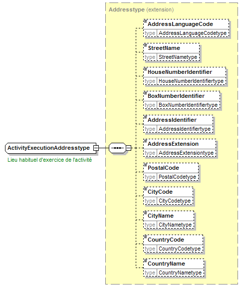 | children | AddressLanguageCode StreetName HouseNumberIdentifier BoxNumberIdentifier AddressIdentifier AddressExtension PostalCode CityCode CityName CountryCode CountryName | ||||||||||||||||||
