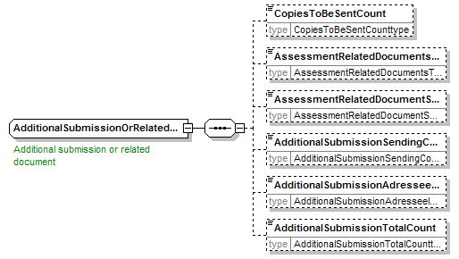 | children | CopiesToBeSentCount AssessmentRelatedDocumentsToBeDeliveredCode AssessmentRelatedDocumentSenderTypeCode AdditionalSubmissionSendingCode AdditionalSubmissionAdresseeIdentificationCode AdditionalSubmissionTotalCount | ||||||||