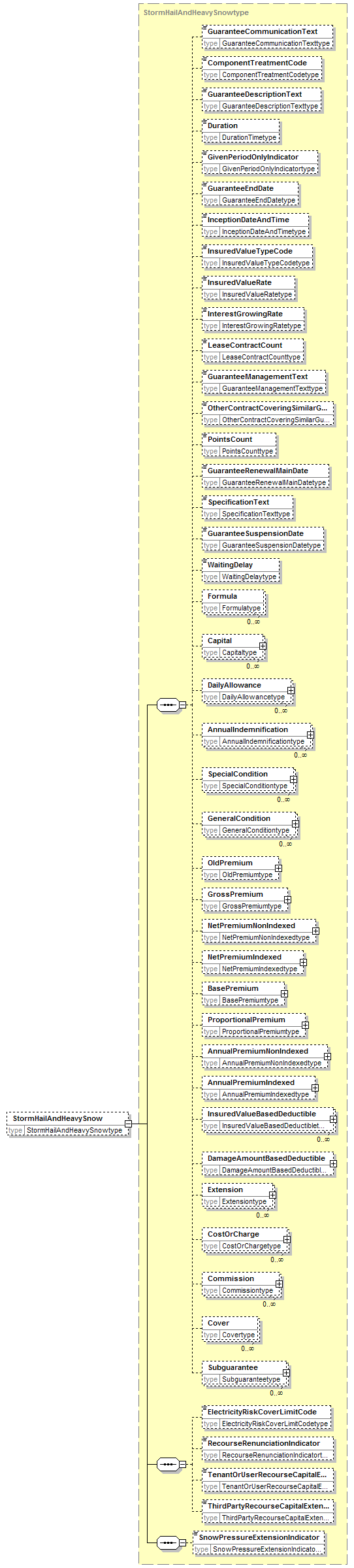 | children | GuaranteeCommunicationText ComponentTreatmentCode GuaranteeDescriptionText Duration GivenPeriodOnlyIndicator GuaranteeEndDate InceptionDateAndTime InsuredValueTypeCode InsuredValueRate InterestGrowingRate LeaseContractCount GuaranteeManagementText OtherContractCoveringSimilarGuaranteeIndicator PointsCount GuaranteeRenewalMainDate SpecificationText GuaranteeSuspensionDate WaitingDelay Formula Capital DailyAllowance AnnualIndemnification SpecialCondition GeneralCondition OldPremium GrossPremium NetPremiumNonIndexed NetPremiumIndexed BasePremium ProportionalPremium AnnualPremiumNonIndexed AnnualPremiumIndexed InsuredValueBasedDeductible DamageAmountBasedDeductible Extension CostOrCharge Commission Cover Subguarantee ElectricityRiskCoverLimitCode RecourseRenunciationIndicator TenantOrUserRecourseCapitalExtensionAmount ThirdPartyRecourseCapitalExtensionAmount SnowPressureExtensionIndicator | ||||||||