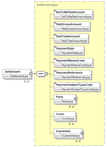 | children | NotToBePaidAmount PaidGrossAmount PaidTotalAmount PaymentDate PaymentMeansCode PaymentReference PaymentSubjectTypeCode Party Cover Guarantee | ||||||||