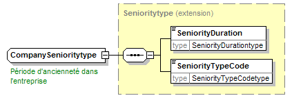 | source | <xsd:complexType name="CompanySenioritytype"> <xsd:annotation> <xsd:appinfo source="tb2Semantics">Seniority (= extend to which somebody is senior, has been in a job) in the company in which the party is employed.</xsd:appinfo> <xsd:appinfo source="tb2Edifact">(DTM+101)</xsd:appinfo> <xsd:documentation source="BusinessTerm" xml:lang="fr">Période d'ancienneté dans l'entreprise</xsd:documentation> <xsd:documentation source="BusinessTerm" xml:lang="nl">Anciënniteit in de onderneming</xsd:documentation> <xsd:documentation source="BusinessTerm" xml:lang="ge">Dienstalter ins Unternehmen</xsd:documentation> <xsd:documentation source="BusinessTerm" xml:lang="en">Seniority in the company</xsd:documentation> <xsd:documentation source="BusinessDefinition" xml:lang="fr">Contient une date et/ou une indication de temps et son format.<br/>(Voir aussi Recommendations - Définition et usage des dates.)</xsd:documentation> <xsd:documentation source="BusinessDefinition" xml:lang="nl">Bevat een datum en/of tijdsaanduiding en zijn formaat.</xsd:documentation> <xsd:documentation source="BusinessDefinition" xml:lang="en">Date/Time</xsd:documentation> </xsd:annotation> <xsd:complexContent> <xsd:extension base="Senioritytype"/> </xsd:complexContent> </xsd:complexType> |