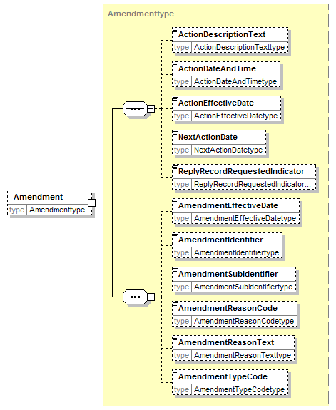 | children | ActionDescriptionText ActionDateAndTime ActionEffectiveDate NextActionDate ReplyRecordRequestedIndicator AmendmentEffectiveDate AmendmentIdentifier AmendmentSubIdentifier AmendmentReasonCode AmendmentReasonText AmendmentTypeCode | ||||||||