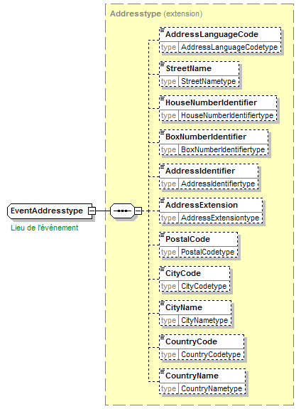 | children | AddressLanguageCode StreetName HouseNumberIdentifier BoxNumberIdentifier AddressIdentifier AddressExtension PostalCode CityCode CityName CountryCode CountryName | ||||||||||||||||||