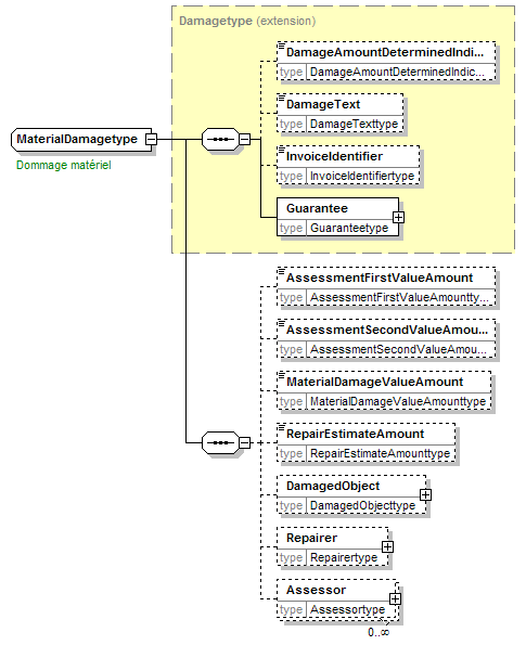 | children | DamageAmountDeterminedIndicator DamageText InvoiceIdentifier Guarantee AssessmentFirstValueAmount AssessmentSecondValueAmount MaterialDamageValueAmount RepairEstimateAmount DamagedObject Repairer Assessor | ||||||||||||||||||