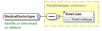 | source | <xsd:complexType name="MedicalDoctortype"> <xsd:annotation> <xsd:appinfo source="tb2Semantics">A licensed medical practitioner, someone who practices medicine.</xsd:appinfo> <xsd:appinfo source="tb2Edifact">(PTY)</xsd:appinfo> <xsd:documentation source="BusinessDefinition" xml:lang="fr">Identifie un intervenant, un médecin.</xsd:documentation> <xsd:documentation source="BusinessDefinition" xml:lang="nl">Identificeert een betrokkene, geneesheer.</xsd:documentation> <xsd:documentation source="BusinessDefinition" xml:lang="en">Party - A licensed medical practitioner, someone who practices medicine.</xsd:documentation> <xsd:documentation source="BusinessTerm" xml:lang="en">Medical doctor</xsd:documentation> <xsd:documentation source="BusinessTerm" xml:lang="nl">Geneesheer</xsd:documentation> <xsd:documentation source="BusinessTerm" xml:lang="fr">Médecin</xsd:documentation> </xsd:annotation> <xsd:complexContent> <xsd:extension base="PartyRoletype"/> </xsd:complexContent> </xsd:complexType> |
