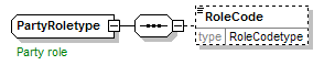 | source | <xsd:complexType name="PartyRoletype"> <xsd:annotation> <xsd:appinfo source="tb2Semantics">The role party plays in insurance, eg policyholder, driver, insurance provider, etc.</xsd:appinfo> <xsd:documentation source="BusinessTerm" xml:lang="en">Party role</xsd:documentation> <xsd:documentation source="BusinessTerm" xml:lang="nl">Partij-rol</xsd:documentation> <xsd:documentation source="BusinessTerm" xml:lang="fr">Partie - rôle</xsd:documentation> </xsd:annotation> <xsd:sequence> <xsd:element name="RoleCode" type="RoleCodetype" minOccurs="0"/> </xsd:sequence> </xsd:complexType> |