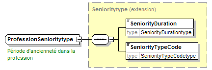 | source | <xsd:complexType name="ProfessionSenioritytype"> <xsd:annotation> <xsd:appinfo source="tb2Semantics">Seniority (= extend to which somebody is senior, has been in a job) in the profession</xsd:appinfo> <xsd:appinfo source="tb2Edifact">(DTM+103)</xsd:appinfo> <xsd:documentation source="BusinessTerm" xml:lang="fr">Période d'ancienneté dans la profession</xsd:documentation> <xsd:documentation source="BusinessTerm" xml:lang="nl">Anciënniteit in het beroep</xsd:documentation> <xsd:documentation source="BusinessTerm" xml:lang="ge">Dienstallter ins Beruf</xsd:documentation> <xsd:documentation source="BusinessTerm" xml:lang="en">Seniority in the profession</xsd:documentation> <xsd:documentation source="BusinessDefinition" xml:lang="fr">Contient une date et/ou une indication de temps et son format.<br/>(Voir aussi Recommendations - Définition et usage des dates.)</xsd:documentation> <xsd:documentation source="BusinessDefinition" xml:lang="nl">Bevat een datum en/of tijdsaanduiding en zijn formaat.</xsd:documentation> <xsd:documentation source="BusinessDefinition" xml:lang="en">Date/Time</xsd:documentation> </xsd:annotation> <xsd:complexContent> <xsd:extension base="Senioritytype"/> </xsd:complexContent> </xsd:complexType> |