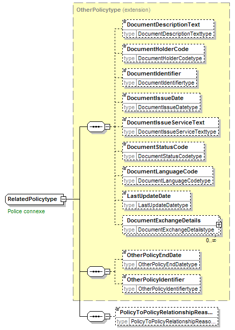 | children | DocumentDescriptionText DocumentHolderCode DocumentIdentifier DocumentIssueDate DocumentIssueServiceText DocumentStatusCode DocumentLanguageCode LastUpdateDate DocumentExchangeDetails OtherPolicyEndDate OtherPolicyIdentifier PolicyToPolicyRelationshipReasonCode | ||||||||||||||||||