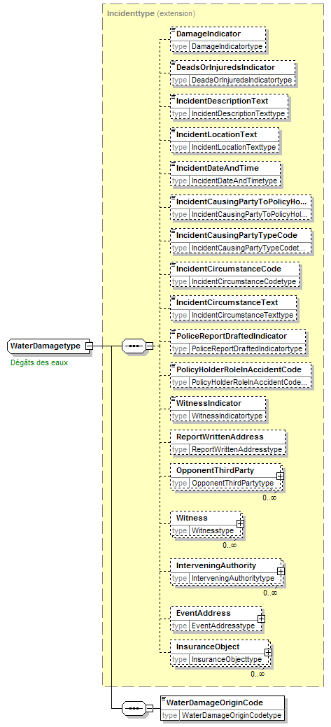 | children | DamageIndicator DeadsOrInjuredsIndicator IncidentDescriptionText IncidentLocationText IncidentDateAndTime IncidentCausingPartyToPolicyHolderRelationshipTypeCode IncidentCausingPartyTypeCode IncidentCircumstanceCode IncidentCircumstanceText PoliceReportDraftedIndicator PolicyHolderRoleInAccidentCode WitnessIndicator ReportWrittenAddress OpponentThirdParty Witness InterveningAuthority EventAddress InsuranceObject WaterDamageOriginCode | ||||||||||||||||||